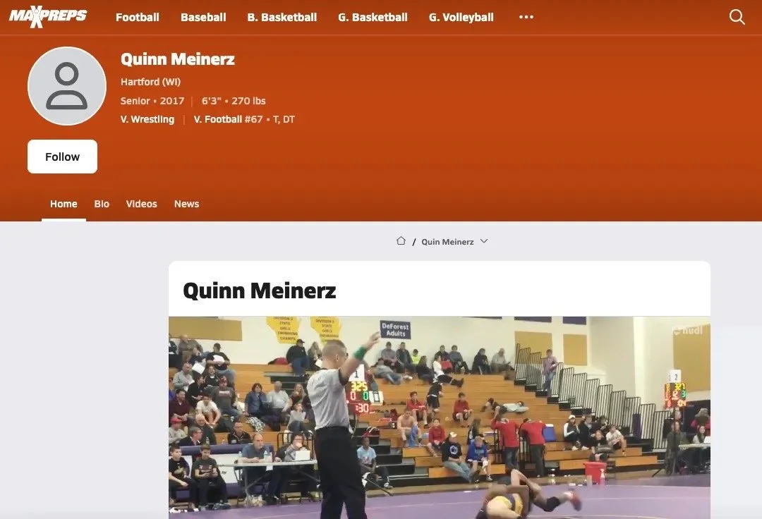 Born and raised in Hartford, Wisconsin, Quinn Meinerz wasn’t the kind of high school athlete who drew the attention of major college scouts.